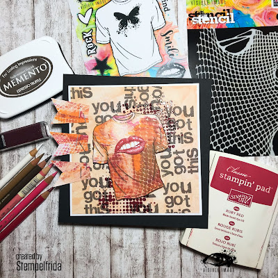 In May there will be a big release at Stamp Corner and in addition to all sorts of great stamp sets there will also be a new design paper set and some new stencils. From the design paper I have hidden a strip here on my card, hihi. It sneaks from underneath the cow. I used one of the new stencils for my background. The stencil contains a collection of sea motifs. I dabbed the anchor through the stencil with Distress Oxides.